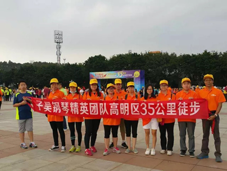 “不忘初心,继续前行”35公里徒步活动是为庆祝高明恢复建制35周年,由高明区委宣传部、高明区升级办、高明电视分台共同策划举办的一次全民参与的文化体育活动。子昊钢琴作为地区文化产业龙头企业,除了践行带头企业的社会责任感外,还旨在磨练员工意志,关爱员工,强身健魄,增强企业凝聚力、向心力,建设有子昊特色的员工队伍,为子昊钢琴的长远发展蓄势备力。
